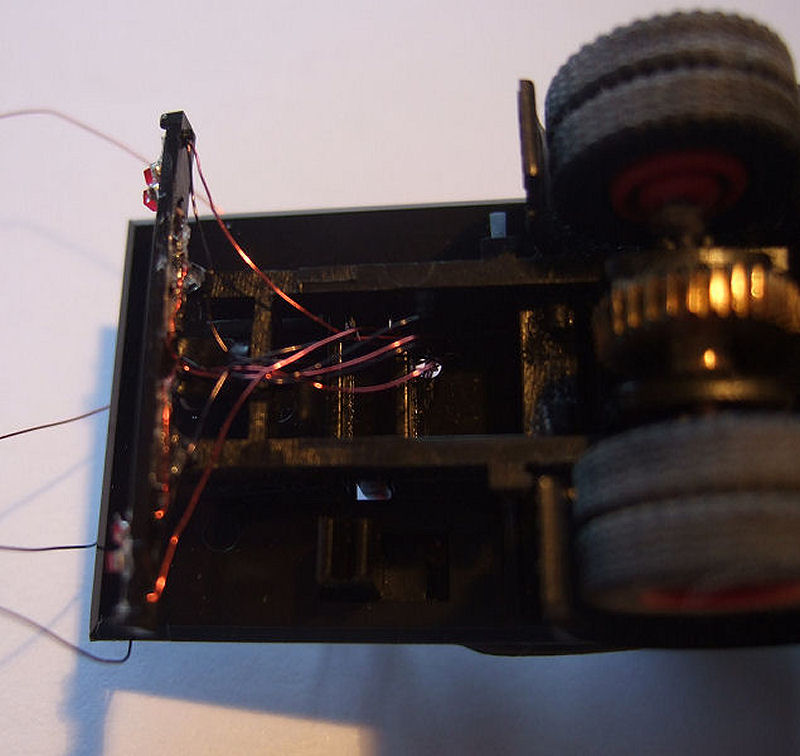 An diesem Tag habe ich die vorderen zwei LED's für die Scheinwerfer angebaut.